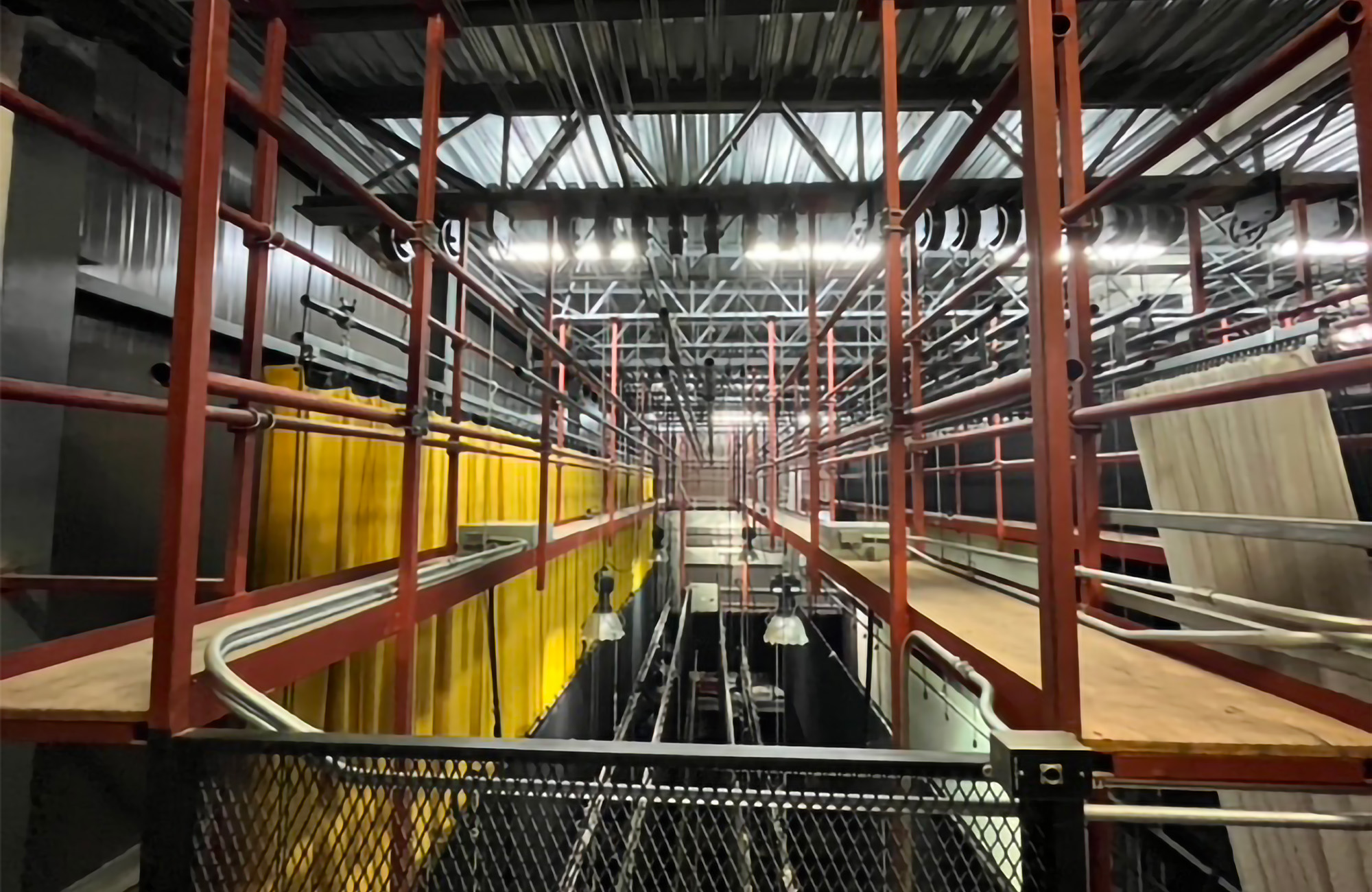 Consultation, conception, et coordination de l’acquisition et l’intégration des systèmes d’accrochage / levage, interconnexion et habillage de scène. - Usine C, Montréal